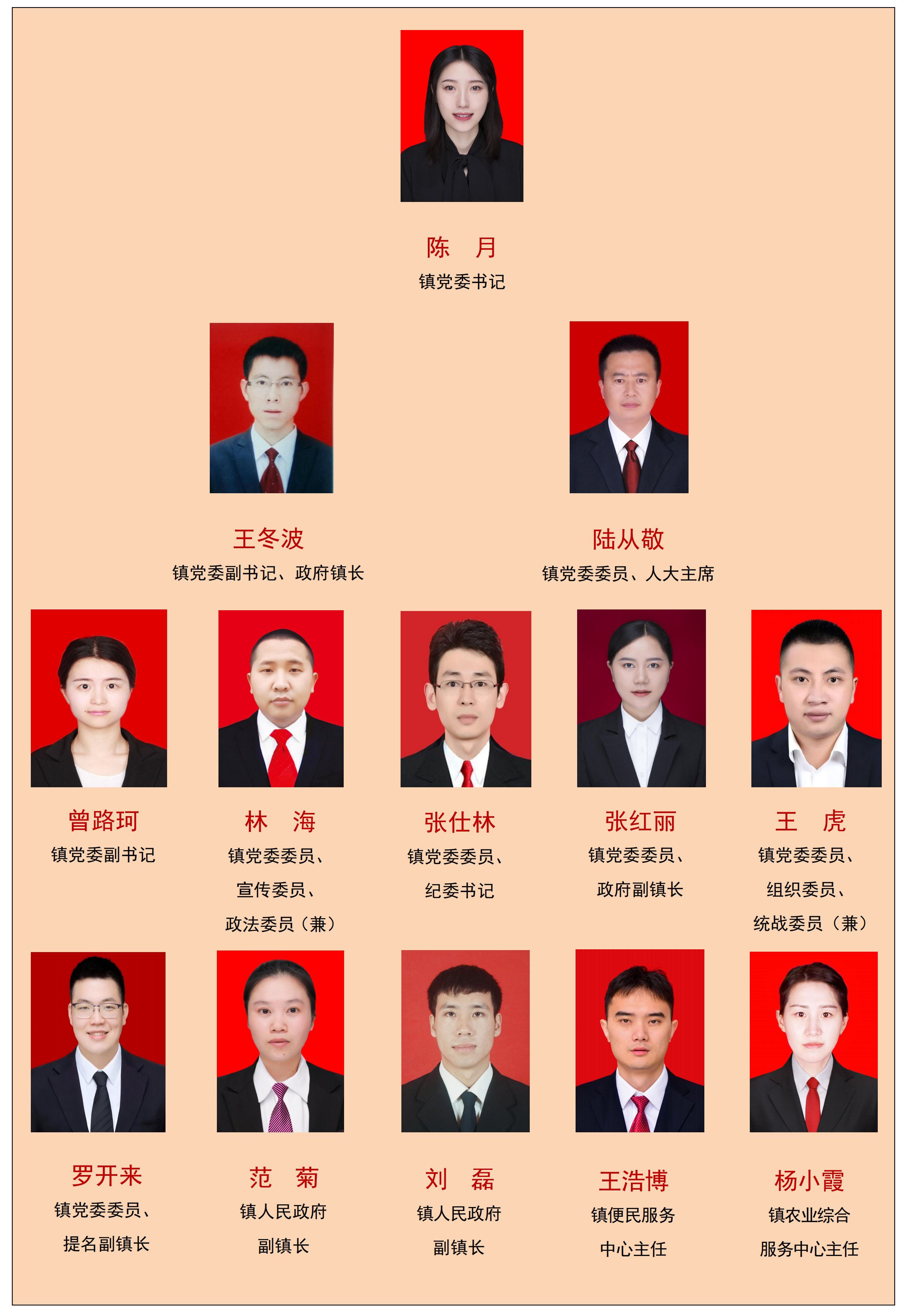 罗开来 镇党委委员、人民武装部部长、副镇长。分工负责人民武装、安全生产、应急管理、防震减灾、气象、市场监督管理(食药安全、消防安全)、退役军人事务管理、人民防空、城乡环境综合治理、环境保护、综合执法等工作。完成镇党委、政府交办的其他工作。分管应急管理办公室、经济发展办公室(生态环境保护办公室)、综合行政执法办公室。