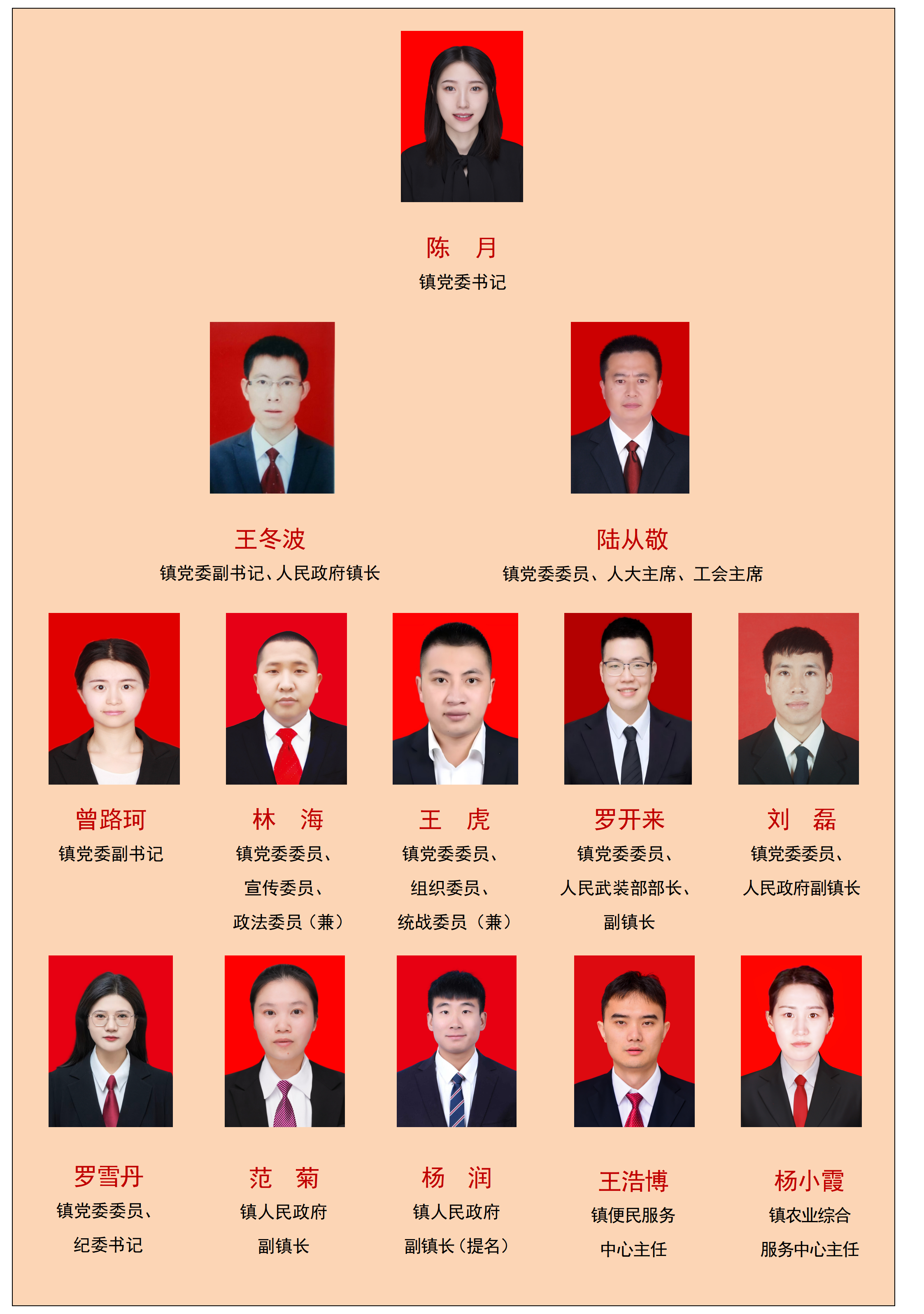罗开来 镇党委委员、人民武装部部长、副镇长。分工负责人民武装、安全生产、应急管理、防震减灾、气象、市场监督管理(食药安全、消防安全)、退役军人事务管理、人民防空、城乡环境综合治理、环境保护、综合执法等工作。完成镇党委、政府交办的其他工作。分管应急管理办公室、经济发展办公室(生态环境保护办公室)、综合行政执法办公室。