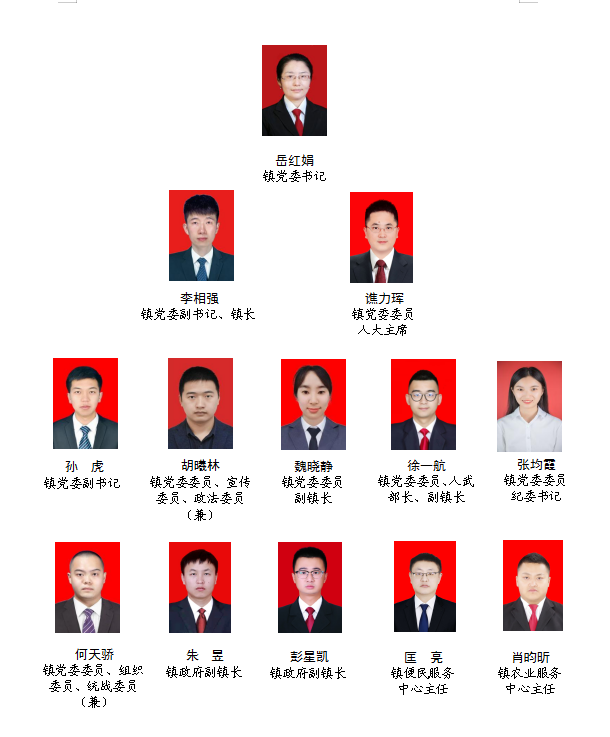 谯力珲 镇党委委员、人大主席 主持镇人大全面工作。负责关工委、老促会、老协、住房和城乡建设、农业农村(农经)、水利(含移民及移民后扶)、河(湖)长制、防汛抗旱、亭子湖管理,协助中心工作。分管乡村建设和文化旅游服务中心。
