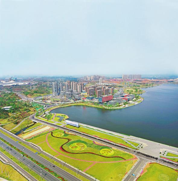 兴隆湖畔的成都科学城,绿草如茵,碧波荡漾。作为“一带一路”建设和长江经济带发展重要节点的天府新区,牢记习近平总书记嘱托,突出公园城市特点,践行生态优先绿色发展,努力打造新的增长极。郭际摄(视觉四川)
