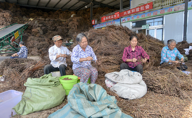 农户在黎生中药材专合社务工