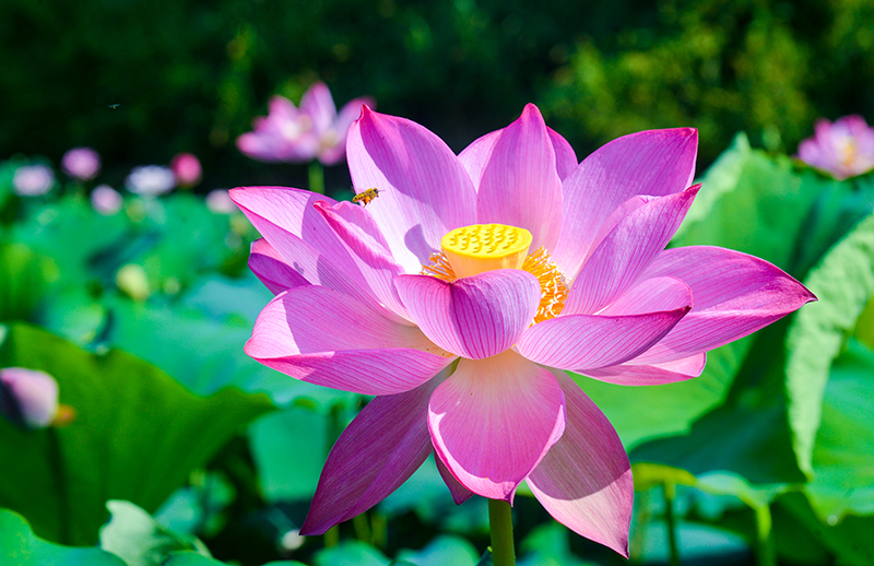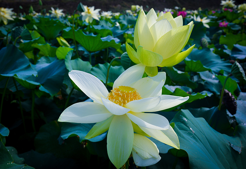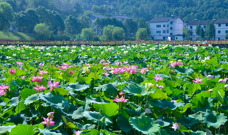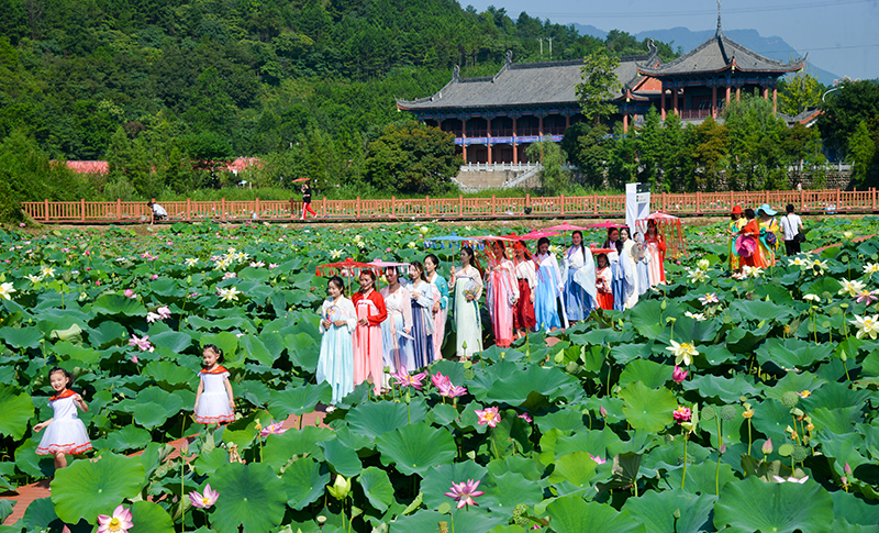 据了解,今年,平乐景区荷塘通过提升改造后,种植的移仙莲、瑶池幻影、瑰丽等11个品种的荷花已到盛开时节,花期也将持续到9月底,花期长达3个月。(李建生 文/图)