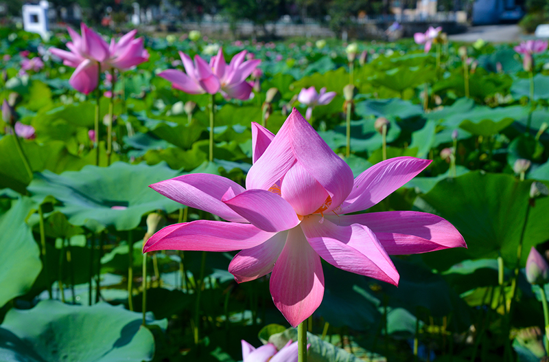 “青荷盖绿水,芙蓉披红鲜。”又到一年荷花盛开的季节,昭化区平乐景区里上百亩的荷塘里,一朵朵美丽的荷花迎风绽放,吸引着四方游客驻足欣赏。