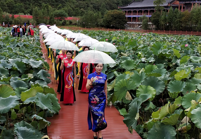 为让游客过一个更有意义的中秋节。当天,主办方还举办了城郊结亲”民宿推介、荷塘旗袍秀等活动。