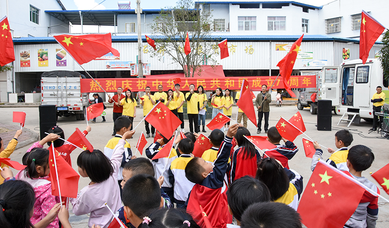 在全区上下深入开展“不忘初心、牢记使命”主题教育期间,在全国上下热烈庆祝“中华人民共和国成立70周年”之际,由区委宣传部、区文旅体局牵头,组织演出队深入乡镇街道,来到群众中间,大家欢聚一堂,手持鲜艳的五星红旗,摆摆龙门阵、看看小节目,忆往昔、话发展、谈变化,共同分享风雨70年来之不易的建设成果,共同描绘幸福的美好明天。