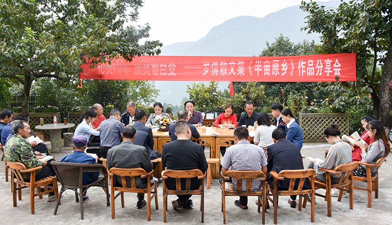 为庆祝新中国成立70周年,喜看脱贫攻坚带来的山乡巨变,9月28日,罗倩散文集《半亩原乡》作品分享会在昭化区大朝乡牛头村举行。