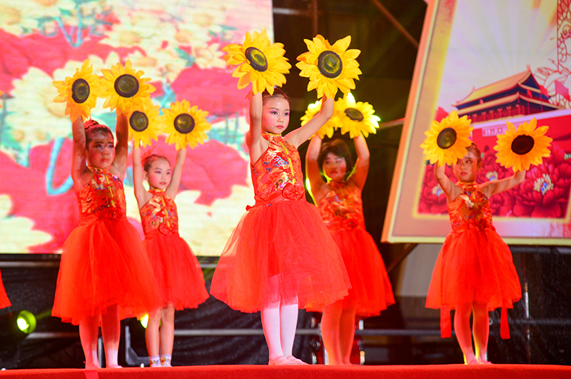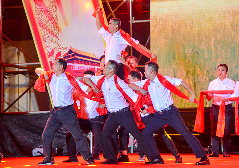 本次演出以爱国情怀为主线,分向祖国献礼和干群大联欢两个篇章。独唱《花开中国》、舞蹈《春天的故事》、朗诵《我的祖国》(、川剧《变脸》等精彩节目依次登场,热情讴歌党的光辉历程,向中华人民共和国成立70周年献礼。现场群众热情高涨和着歌声,挥舞着国旗流露出党员群众对祖国的款款深情,共同为祖国献上了一份真情的祝福,纷纷向祖国深情表白。