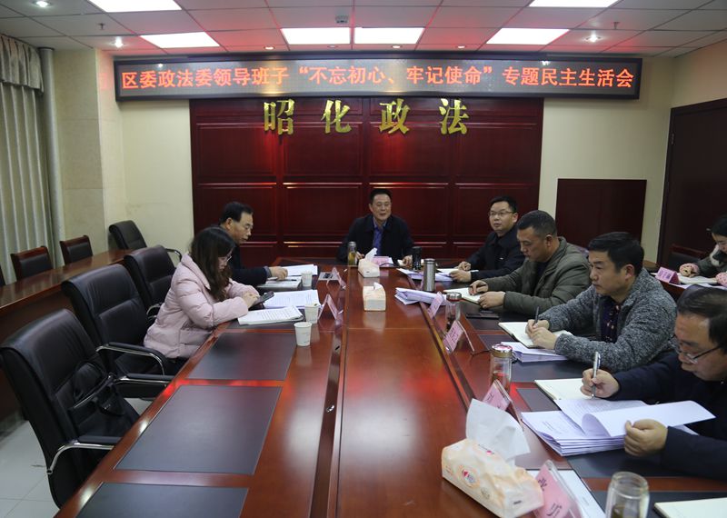 12月9日,区委政法委召开领导班子“不忘初心、牢记使命”专题民主生活会。聚焦“不忘初心、牢记使命”主题,围绕理论学习有收获、思想政治受洗礼、干事创业敢担当、为民服务解难题、清正廉洁作表率的目标,检视查找出问题,深刻剖析根源,开展批评与自我批评。区委常委、政法委书记朱永国参加会议,区委“不忘初心、牢记使命”主题教育第八巡回指导组组长魏兴华到会指导。