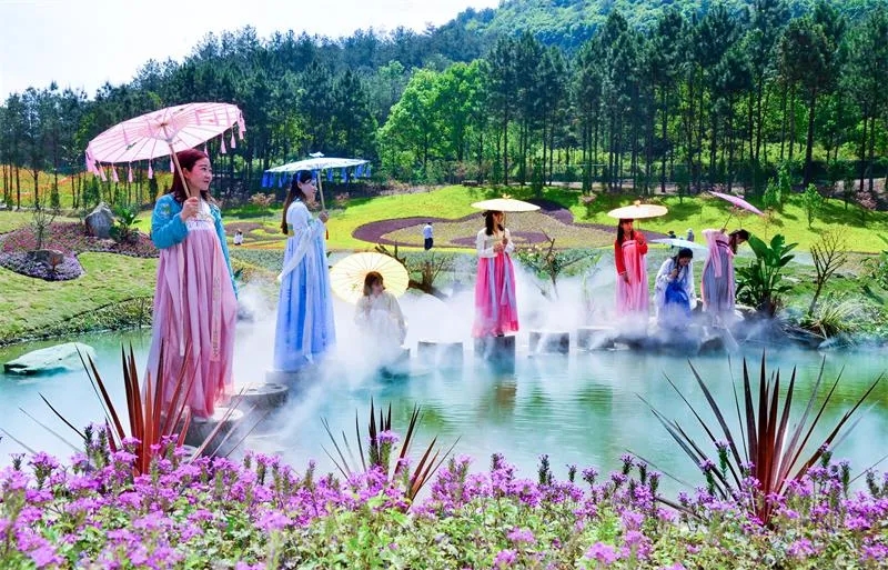 美酒微醉,好花半开,这个旅游日有漫山遍野的鲜花陪你,如意花海景观由“祥云”“莲花”组成,期间栽种多种植物花草,微风拂过带来迷人的花香,让整个人的心情瞬间都好起来。
