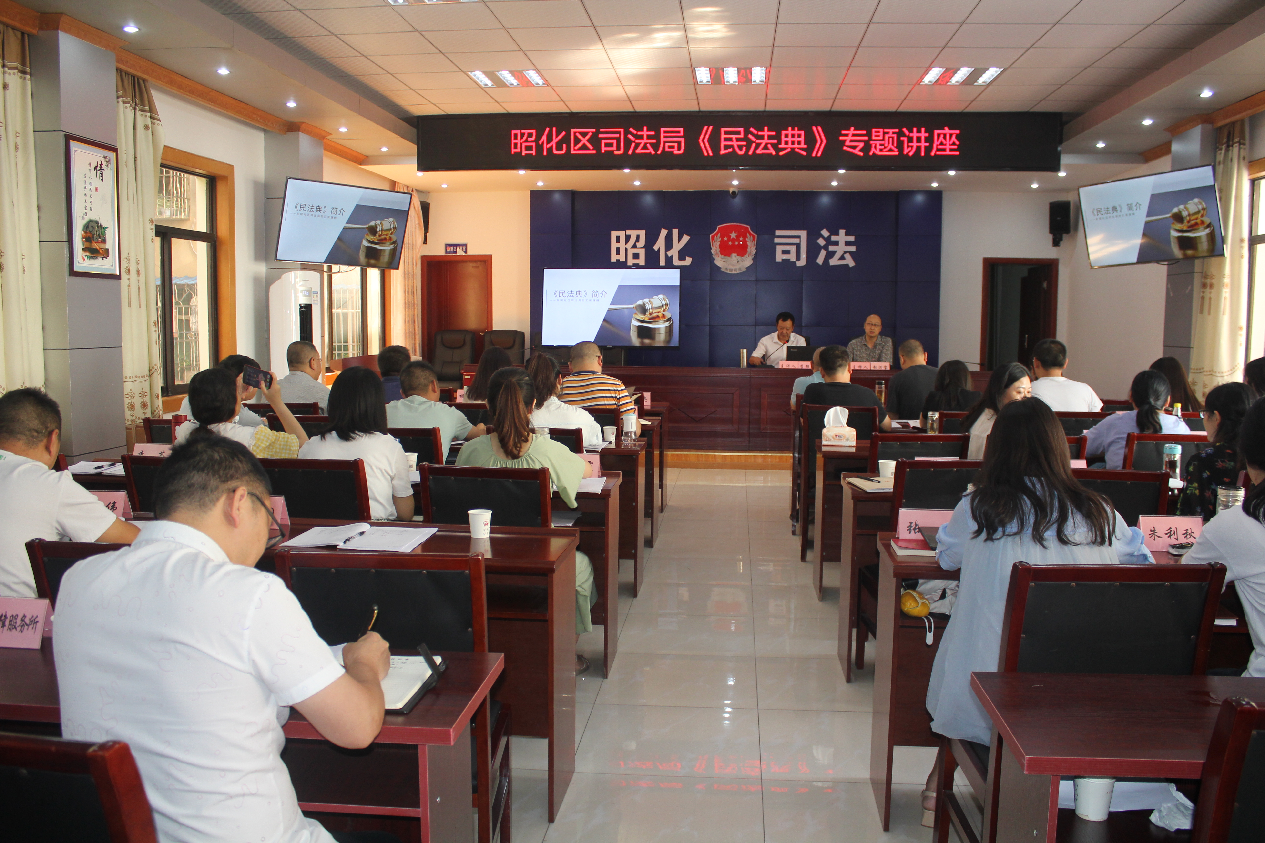 为深入贯彻落实习近平总书记在中央政治局第二十次集中学习会上的讲话精神,充分认识颁布实施民法典重大意义,8月27日,昭化区司法局邀请区政府法律顾问、四川广府律师事务所律师李强才为全体司法行政干部进行民法典专题解读。