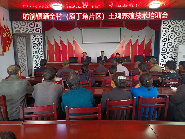 由于非洲猪瘟的肆虐,丁角村的生猪产业受到重创,村两委临时决定以养殖土鸡作为全村脱贫产业。9月25日,昭化区畜牧产业科技特派团深入射箭镇丁角村开展土鸡养殖技术培训。首先农业局畜牧专家与村农技员、第一书记一起走访刘兴明、符建林等贫困户,了解养殖中存在的问题。随后集中对丁角村40余户土鸡养殖户开展了技术培训。现场培训会上,科技特派团专家王生明老师就土鸡养殖场地规划建设进行了讲解,畜牧兽医师青云峰重点就土鸡疫病防治进行了深入浅出的讲解,并与群众进行了积极交流互动、答疑解惑,发放了100余份实用技术手册和扶贫在线宣传资料。通过培训,提高了村民的科学养殖意识,传授了实用的养殖技术方法,为贫困村产业脱贫致富贡献力量。