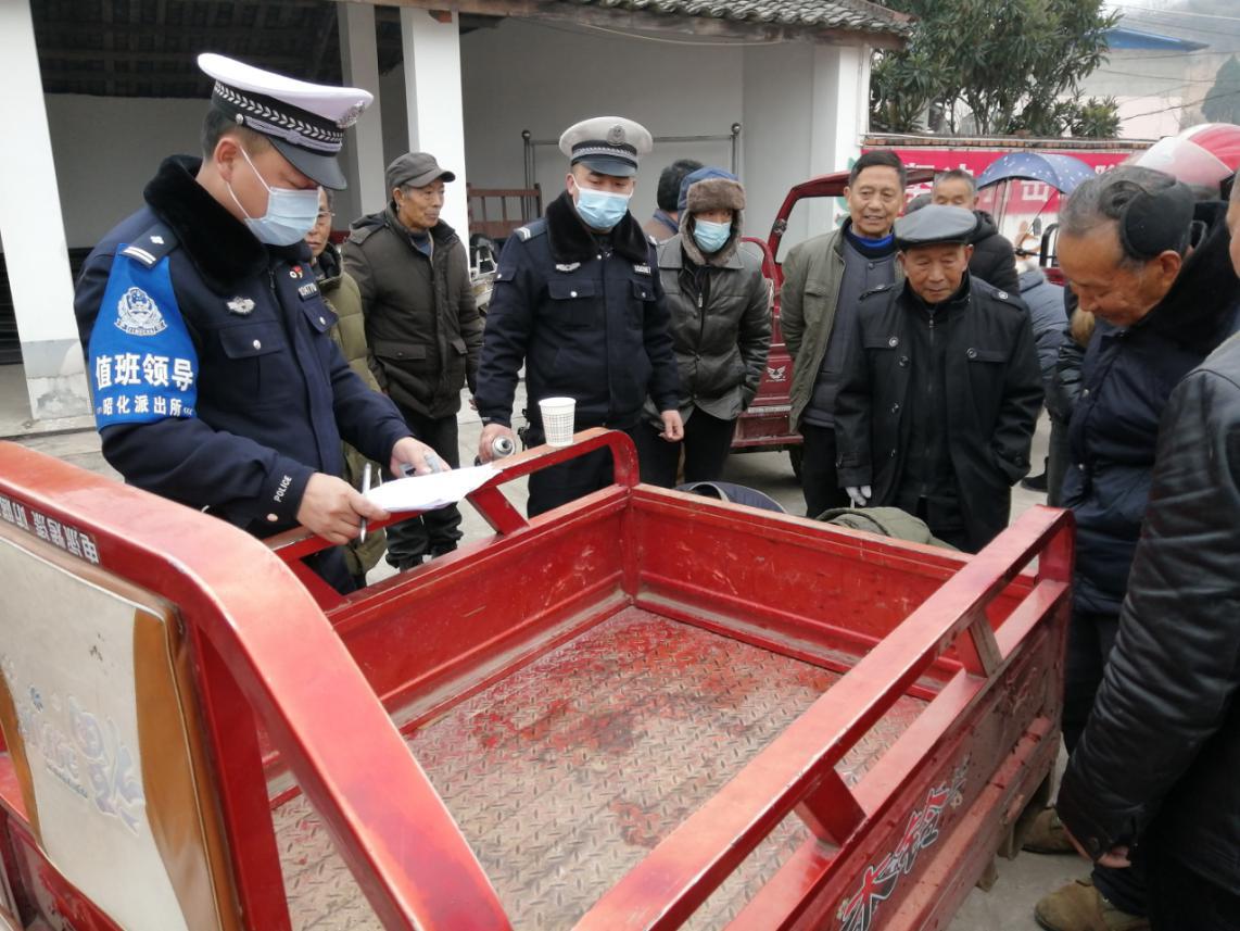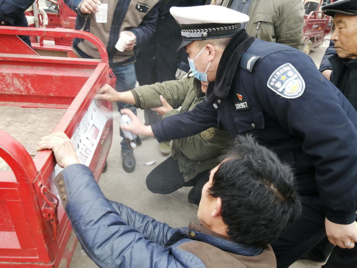 通过逐村对三轮车进行编号登记喷漆警示,严查超重超员、违法载人、未按规定佩戴头盔等交通违法行为,依法依规从严处理,发现一起查处一起。通过悬挂横幅、发放宣传资料等形式,重点宣传三轮车、电瓶车等交通违法行为的危害及后果,旨在让群众深刻认识到遵守交通法律法规的重要性,进一步提升群众安全行车意识。