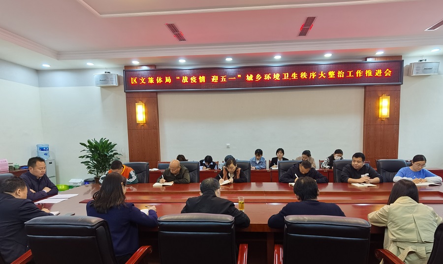 4月17日上午,区文旅体局召开“战疫情·迎五一”环境卫生秩序大整治工作推进会,按照市、区部署要求,要求全体干部职工切实抓好城乡环境卫生秩序大整治与安全生产、信访稳定结合工作,4月17日至4月21日开展为期5天的集中整治,确保实现“干干净净、平平安安、和谐稳定”的集中整治目标。