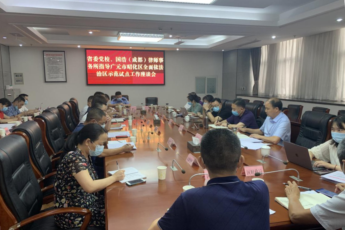 8月11日,省委党校、国浩(成都)律师事务所指导广元市昭化区全面依法治区示范试点工作座谈会召开。省委党校法学教研部主任吴涛教授、国浩(成都)律师事务所主任李世亮等出席会议,区委常委、政法委书记苏科年主持会议并讲话。