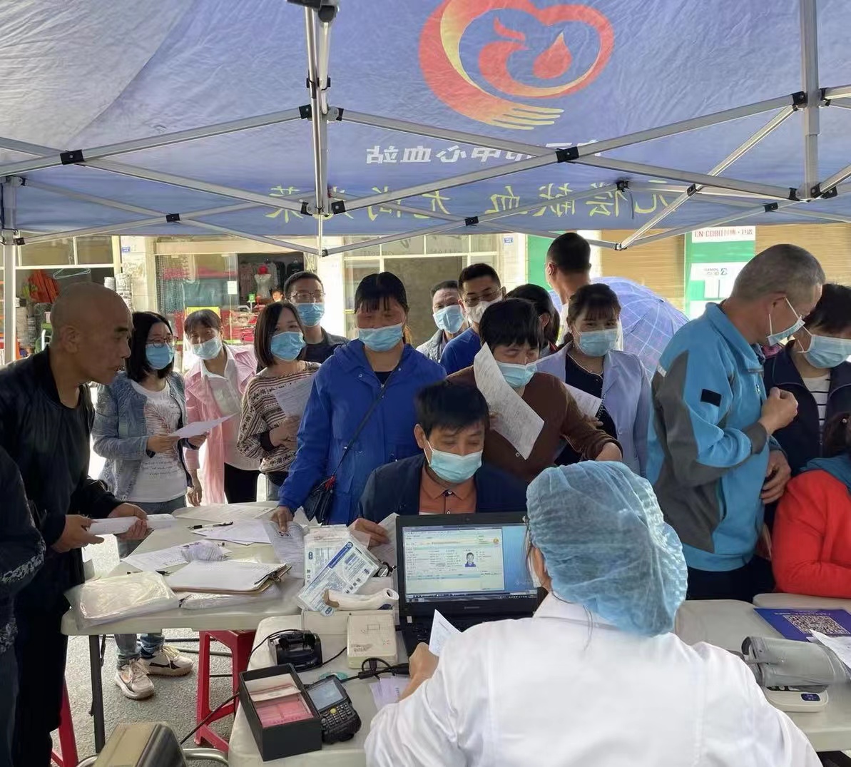 早上九点,参加无偿献血的同志们就来到镇信用社门口的献血车旁,在登记处有序排队,积极配合医护人员完成信息登记、量血压、化验、抽血等环节。在现场,医务人员技术娴熟、服务贴心,献血群众精神饱满、热情高涨,纷纷表示愿为社会奉献自己的爱心。