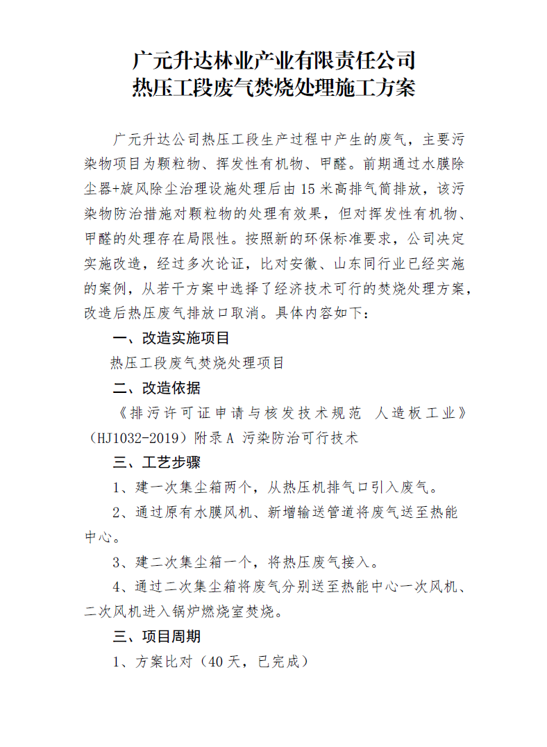 完成昭化区升达林业挥发性有机物治理设施安装,并投入运行。