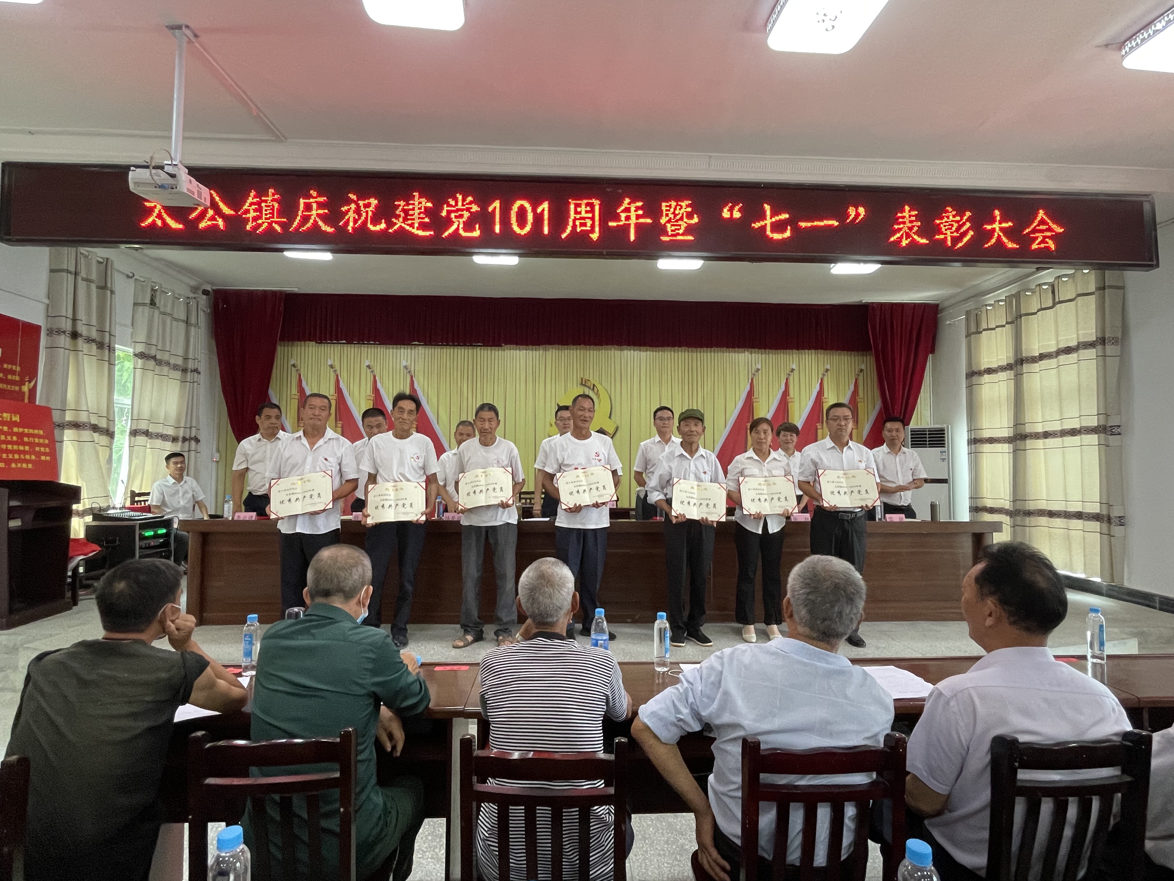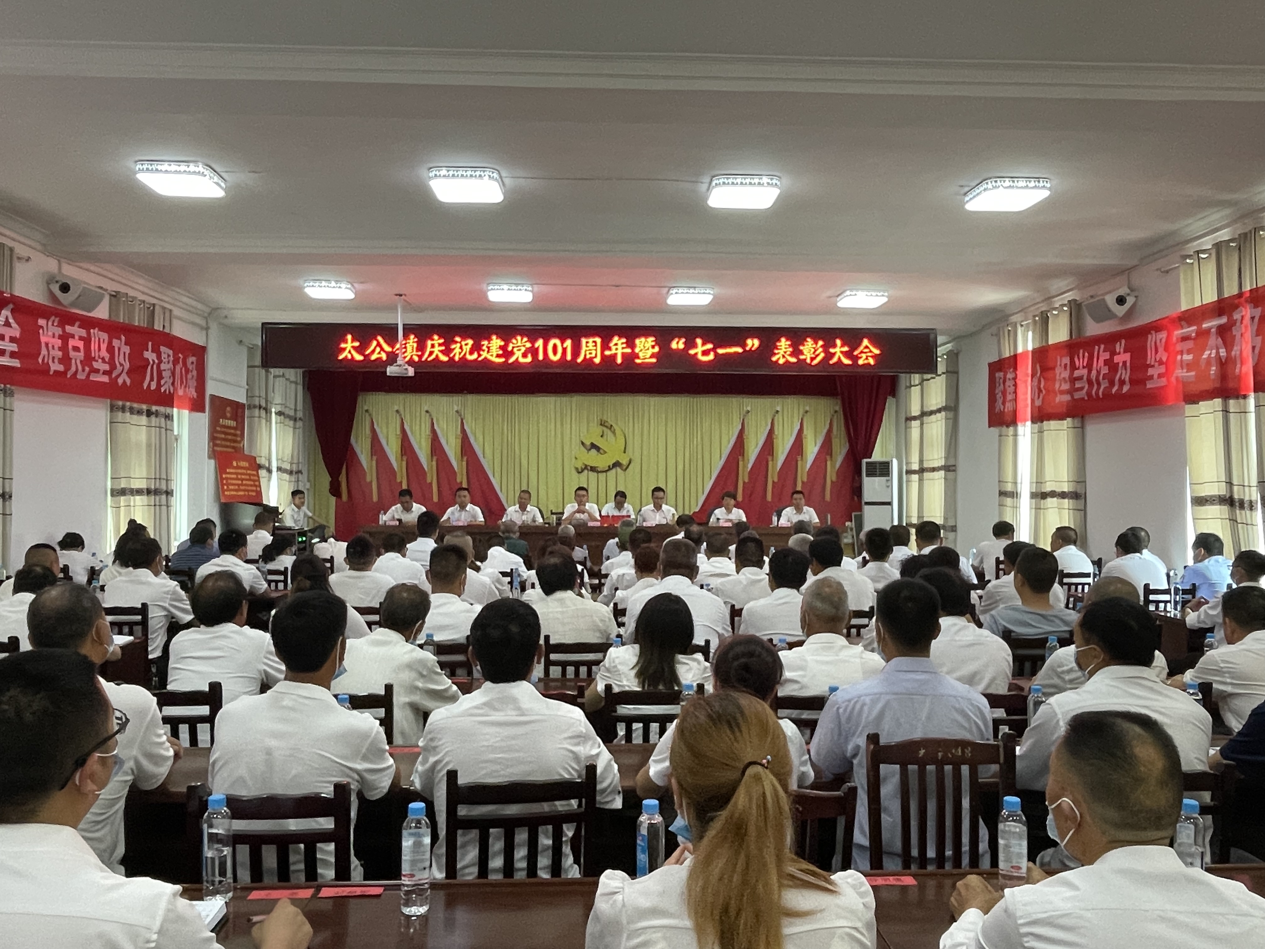为庆祝中国共产党成立101周年,回顾党的光辉历史,歌颂党的丰功伟绩,彰显新时期优秀共产党员精神风貌,6月30日下午,太公镇召开庆祝中国共产党成立101周年暨“七一”表彰大会,镇全体党员干部、老党员代表、各村(社区)党支部书记和受表彰的党员及纳新人员共计100余人参加会议。