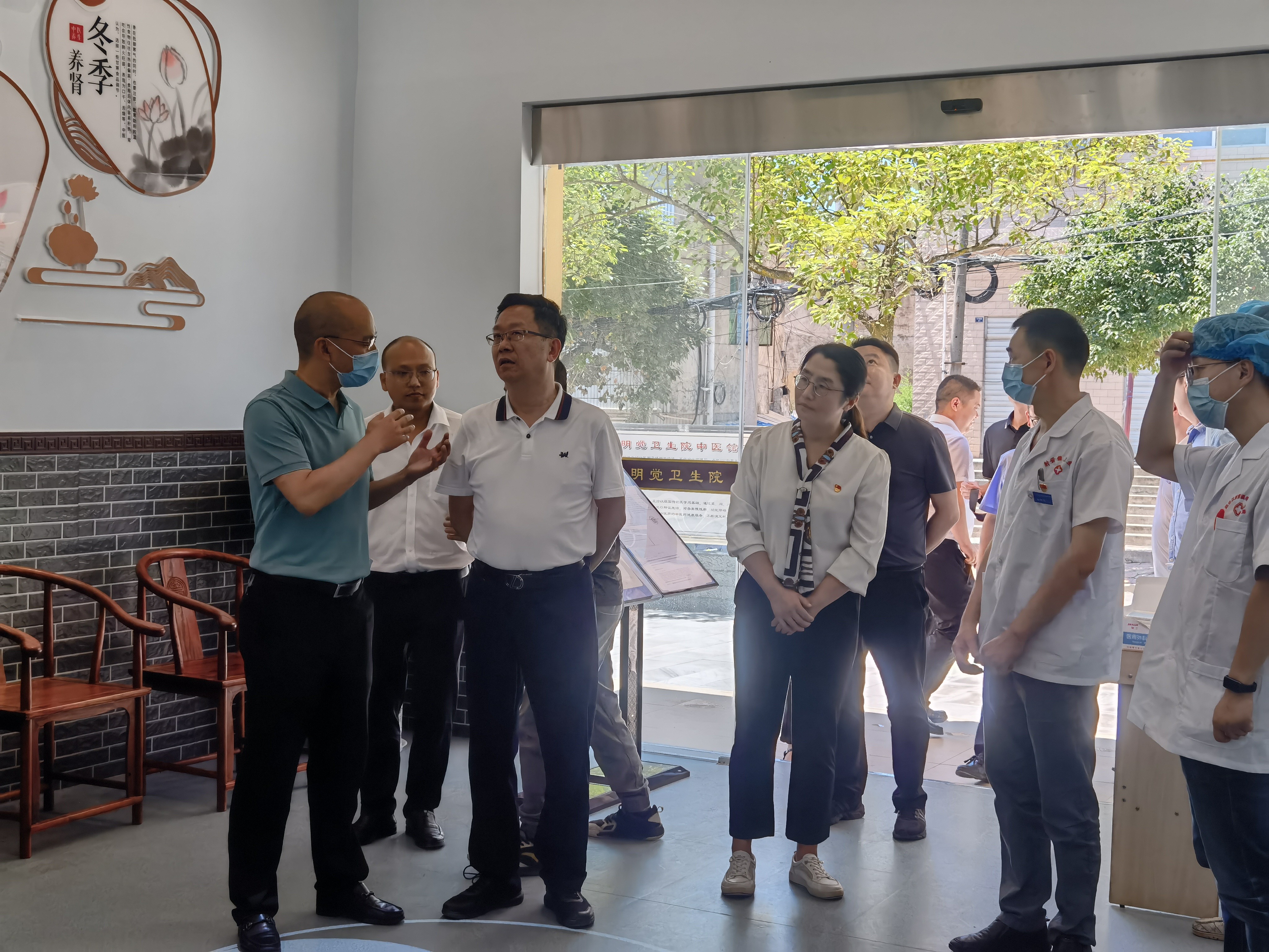 图为区委书记刘自强指导明觉中医馆中医药文化内涵建设工作
