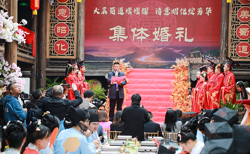 3月6日,我区在昭化古城举办2023年第一场集体婚礼。来自全区的5对新人怀着对未来美好生活的憧憬,在千年古城和亲朋好友的见证下领取结婚证书,共许山盟海誓,开启美好的婚姻生活,用实际行动践行和倡导移风易俗文明新尚。引领青年移风易俗、倡导健康、文明生活方式,为喜事新办开好头,起好步。