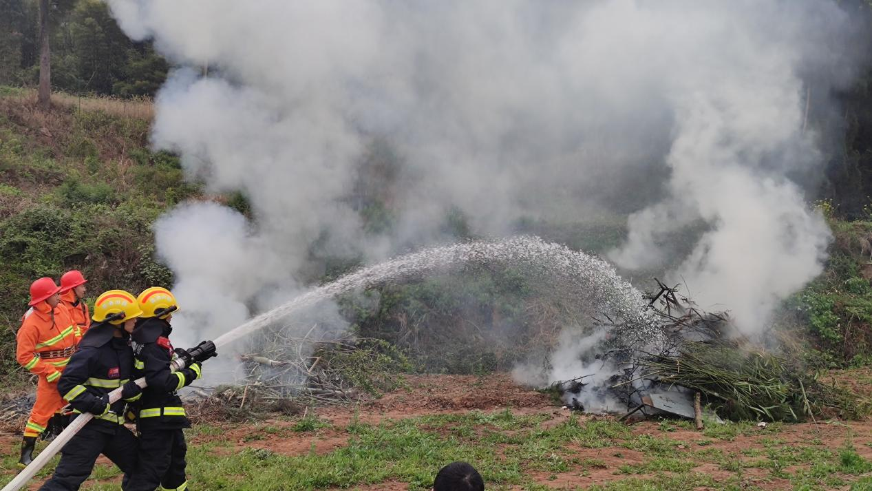 本次演练模拟护林员巡山发现火情,迅速通过电话上报给村委会,村委会通过护林员对现场火情情况报告立即联系镇森林防灭火指挥部,镇森林防火指挥部立即启动森林火灾应急处置办法,组织队伍集结,安排扑火人员尽快到达现场。扑火队员快速疏散群众、查看火情,利用扑火把、灭火器、风力灭火机等灭火用具采用阻、打等方式进行火灾急救行动。镇消防中队配合行动,消防水车快速出击,彻底将火苗扑灭,随后查看余火、验收火场等情况。顺利完成本次森林火灾应急演练。
