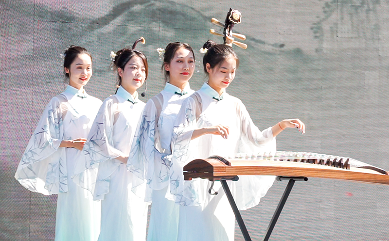 开幕式现场, 歌曲《蜀道诗雨》、民乐演奏《庆丰收》、小品《桃园发展路》、舞蹈《江山如画》、杂技《太空漫步》等10余个文艺节目精彩上演,让广大游客在节目中感受虎跳产业振兴的巨大“蝶变”。开幕式上还对虎跳镇评选的“孝老爱亲”模范进行了表彰。