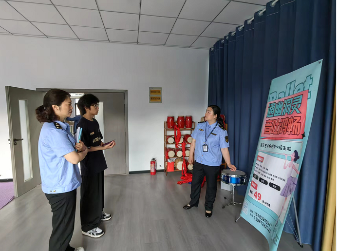 本次联合执法检查采取不发通知、不打招呼、直奔现场的方式,重点围绕培训机构的办学资质、经营范围、教学内容、消防安全、教师资质、虚假宣传等方面进行检查,共检查文化艺术体育等各类培训机构9家,发现过期灭火器4具、未按期进行消防疏散培训演练2起、消防设施缺失3处、监控系统未正常运行2处,对限时整改问题下达整改通知2份。行动中,执法监管人员依照自身职能,将执法和普法有机融合,向经营业主详细宣讲了师德师风标准、培训材料编制规范等,要求非学科类培训机构不能以“素质拓展”“思维训练”等名义超范围开展学科类培训。
