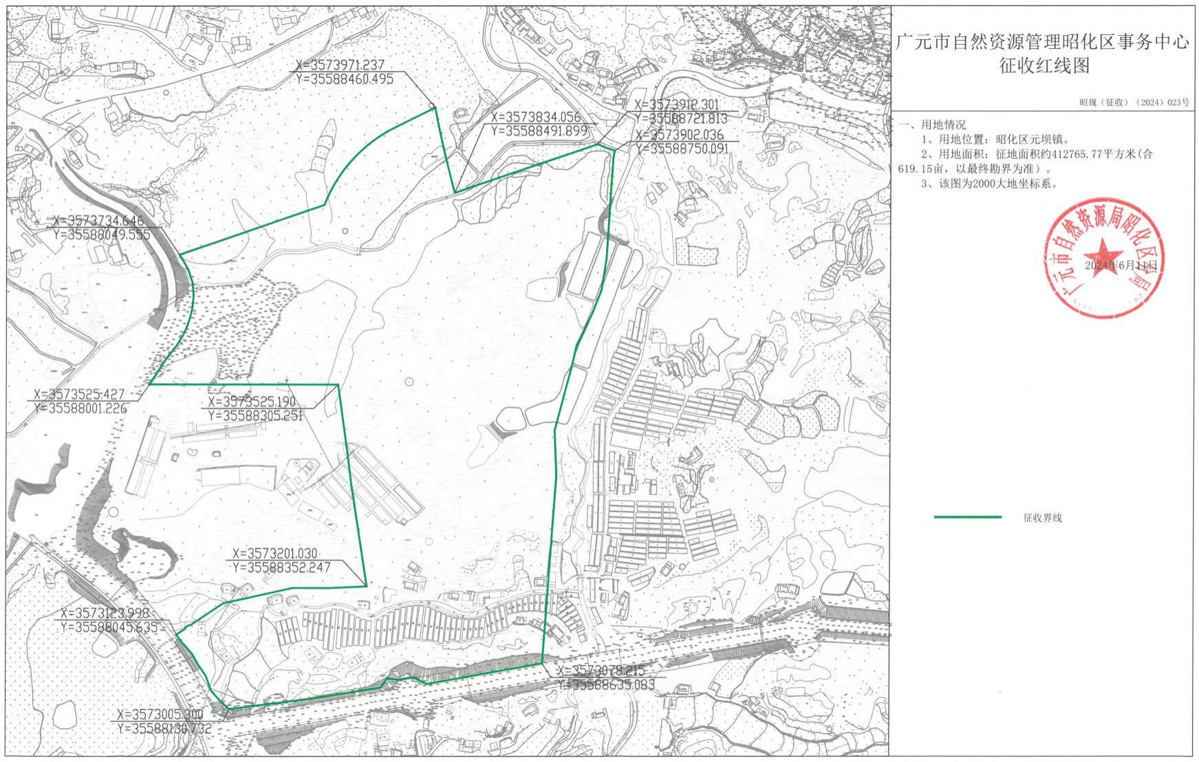 拟征收土地位于广元市昭化区元坝镇大坝村一组、三组、四组,杏花村二组。拟征收集体土地面积41.2766公顷,具体地类、面积以勘测定界为准。