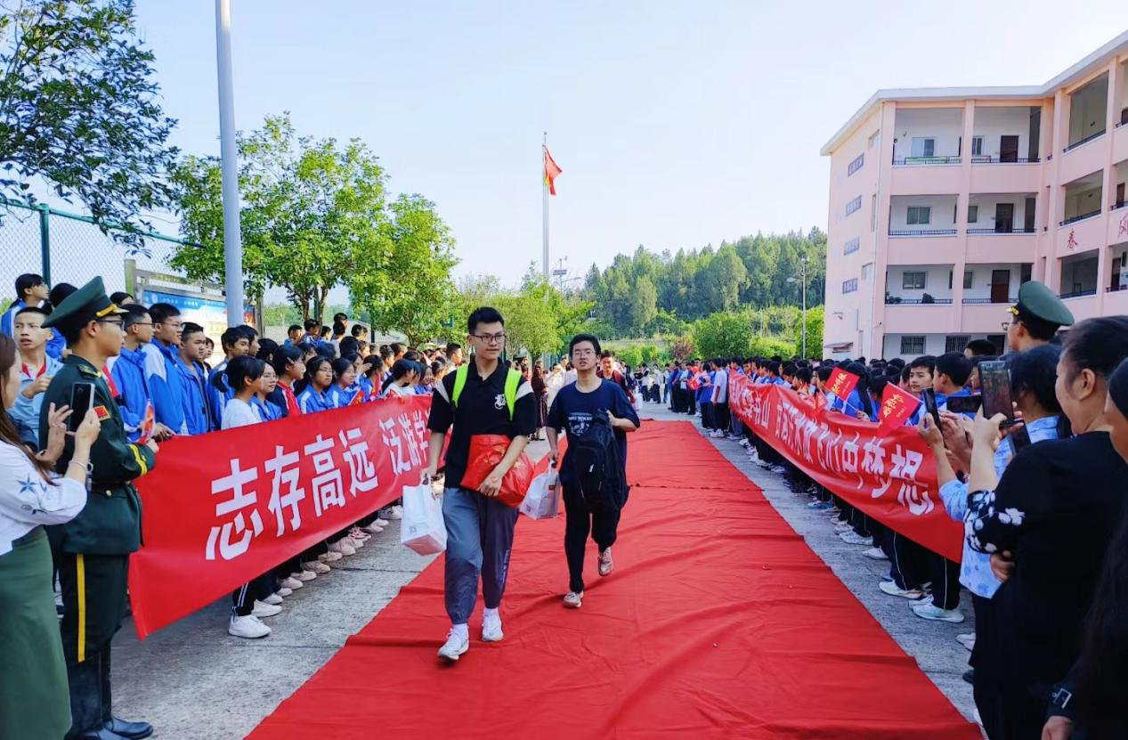 虎跳镇党委副书记唐荣江、副镇长王柳银,虎跳中学校级领导、全体师生参加了本次出征仪式。