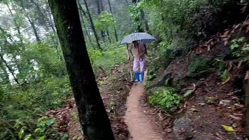 射箭区域性养老服务中心安全员排查隐患清理后坡水渠