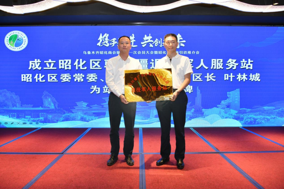 区委常委、常务副区长叶林城为新疆异地退役军人服务站授牌