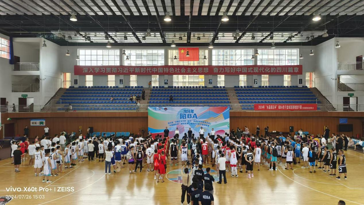 7月26日,四川省“百城千乡万村·社区”运动会系列赛事活动—昭化区第一届“昭BA”男子篮球联赛在区澳援文体中心举办开赛仪式。区委常委、区委组织部部长、区总工会主席安亚斌,区政府副区长陈施朴,区总工会,区文化广播电视体育和旅游局,区篮球协会相关负责人以及来自乡镇机关组和社会公开组的32支代表队450余人出席开赛仪式。