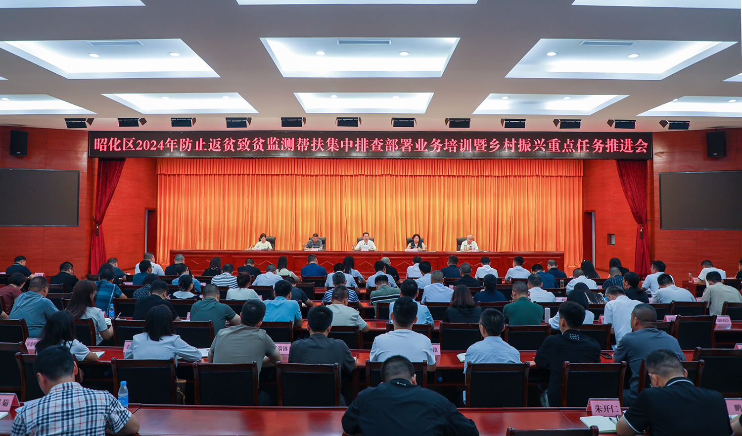 8月15日,昭化区召开2024年防止返贫致贫监测帮扶集中排查部署业务培训暨乡村振兴重点任务推进会,安排相关重点工作,并对八月份巩固拓展脱贫攻坚成果工作进行调度。区委书记刘自强出席会议并讲话,他强调,要全面贯彻党的二十大和二十届三中全会精神,深入学习贯彻习近平总书记关于“三农”工作的重要论述和关于健全防止返贫动态监测和帮扶机制的重要指示精神,全面落实省、市相关会议精神,打好巩固拓展脱贫攻坚成果整体战翻身仗,坚决守住不发生规模性返贫底线。区委副书记、区长王静主持会议。