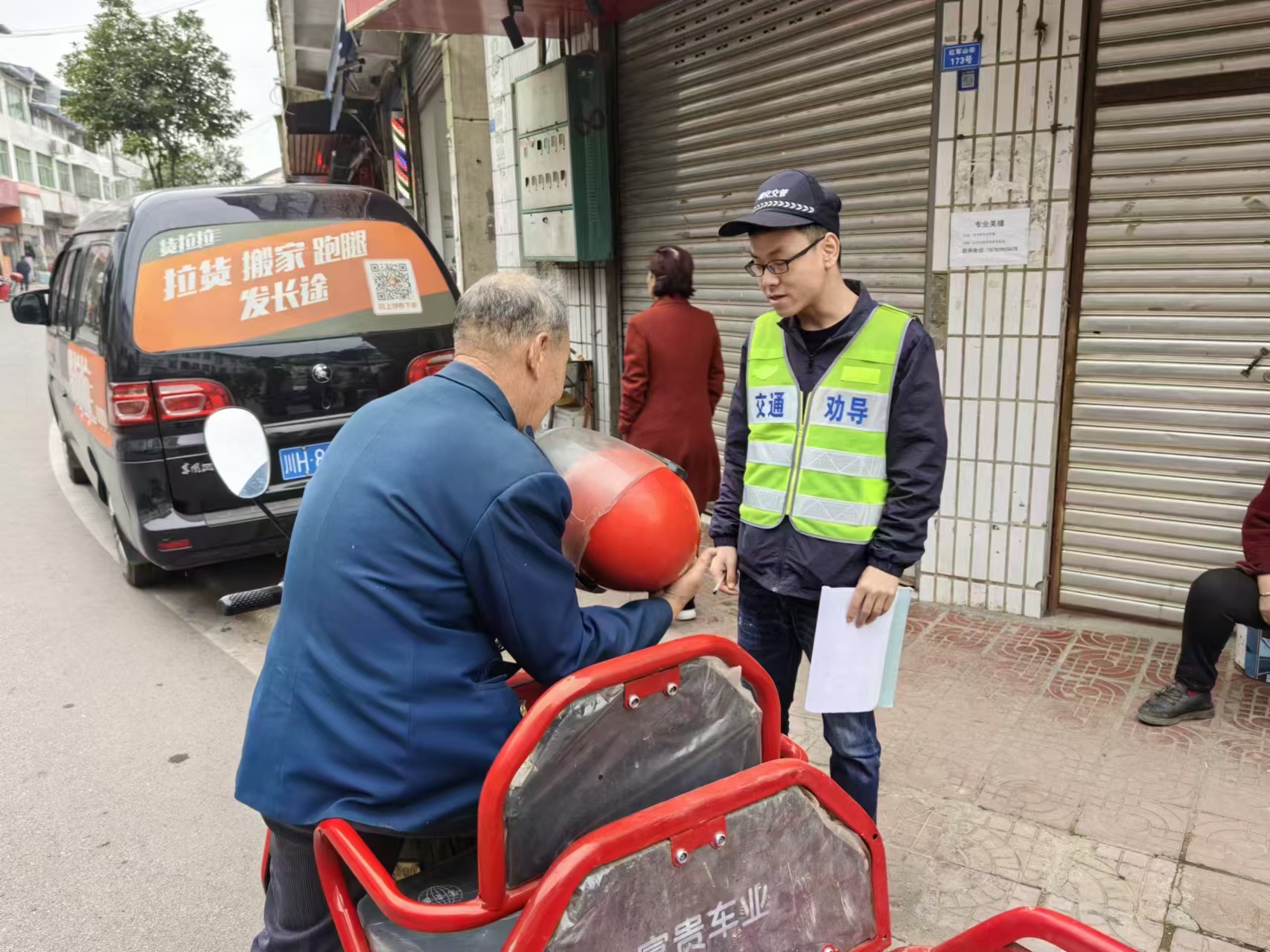 2024年11月8日上午9时,太公镇应急管理办公室、社会治安综合治理中心利用逢场天在场镇开展道路交通文明劝导活动。此次活动重点对三轮车非法载人、驾驶电动摩托车不带头盔、驾乘人员不系安全带、超载、超员,禁停区域乱停乱放等交通行为进行面对面劝导,倡导文明出行,着力增强广大群众的安全意识和法治意识,筑牢道路交通安全防线,为群众安全出行“保驾护航”。
