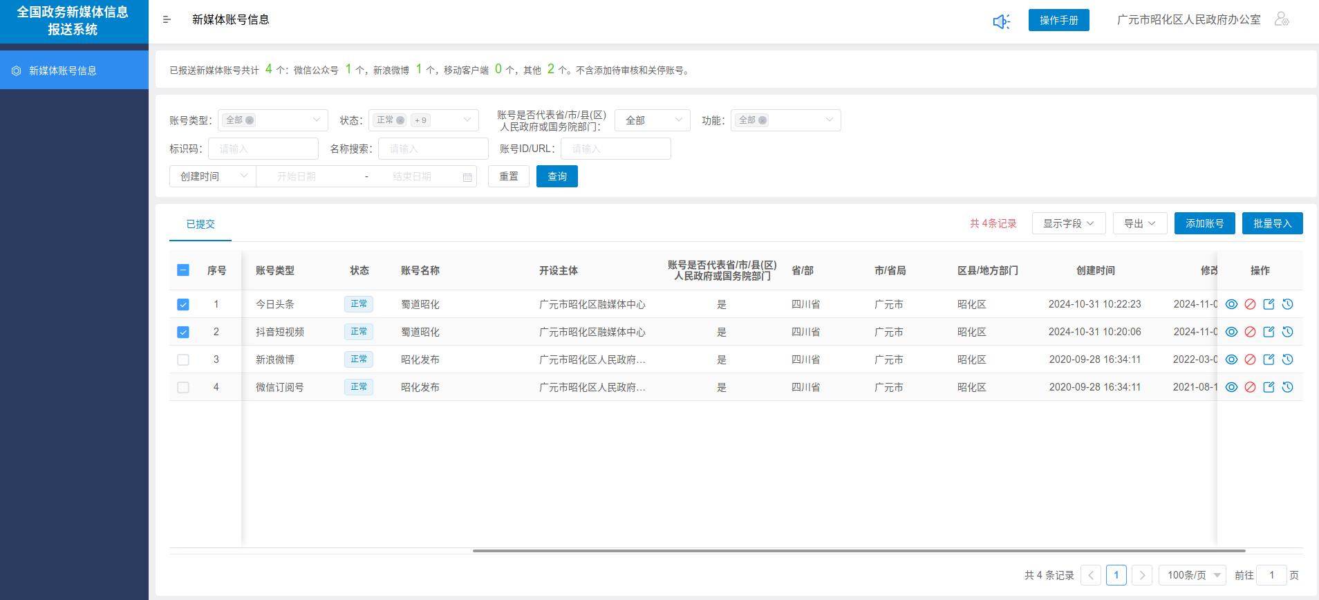 (一)主动公开。2024年,全区各级行政机关通过政府网站、政务微博(微信)、新闻媒体、公示栏(屏)、公开资料等渠道和方式主动公开政府信息14183条。其中,政府网站4614条;利用“昭化发布”微信、微博,今日头条、川报观察等新媒体平台,及时发布反应昭化区经济社会发展成效等时政信息8036条;通过公示栏(屏)、公开资料等渠道发布信息1533条。