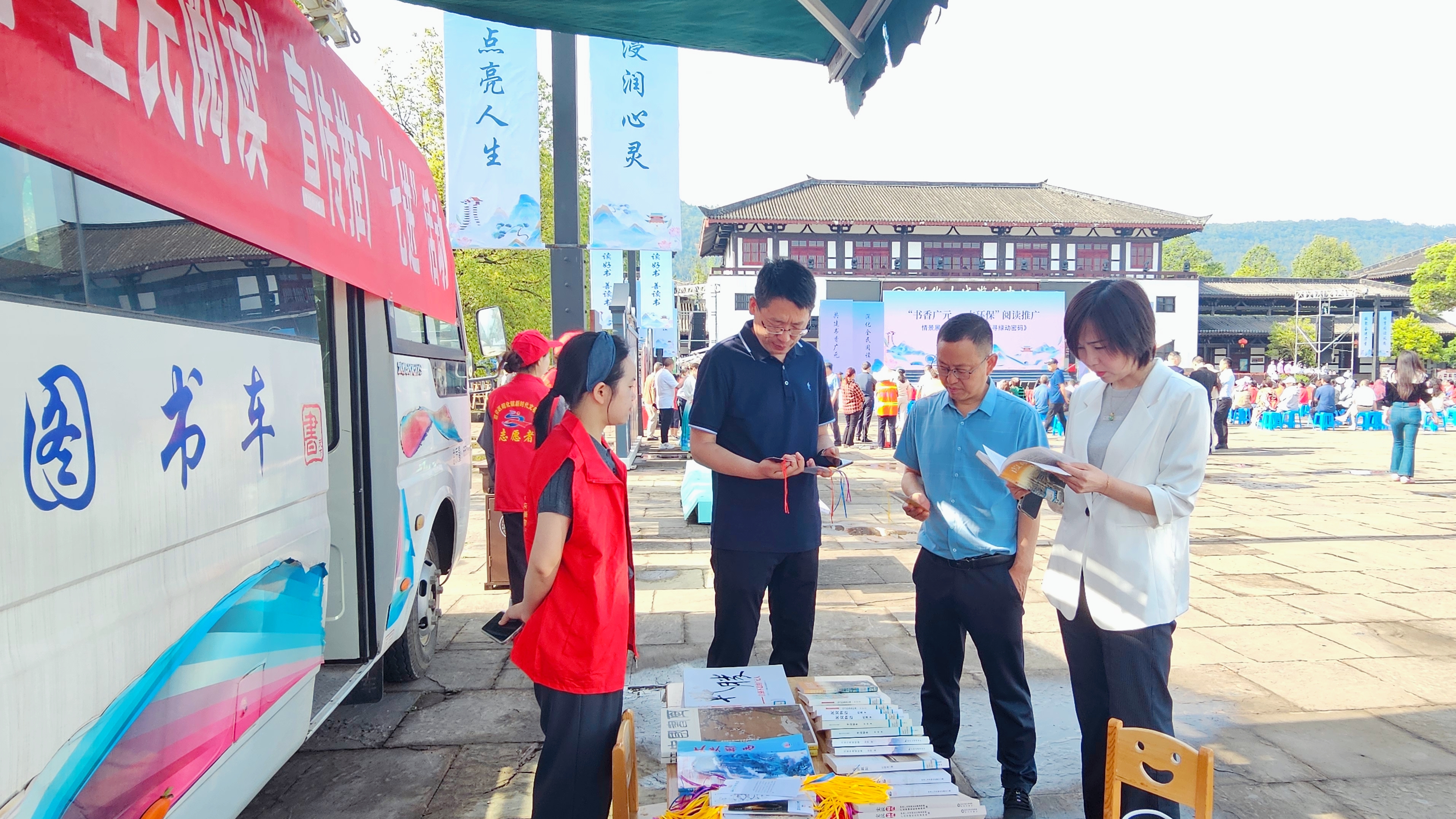活动通过流动图书车、阅读推广、赠书签等形式,为市民游客提供便捷的阅读服务。活动现场,流动图书车涵盖文学、农业科技、少儿读物等多类别书籍,吸引众多市民游客驻足翻阅。图书馆工作人员开展地方文献展示和推广,让读者在阅读中感受本土文化的魅力;并提供现场咨询服务,向读者宣传图书馆免费开放政策、数字资源使用方式等,鼓励大家积极走进图书馆,享受阅读乐趣。