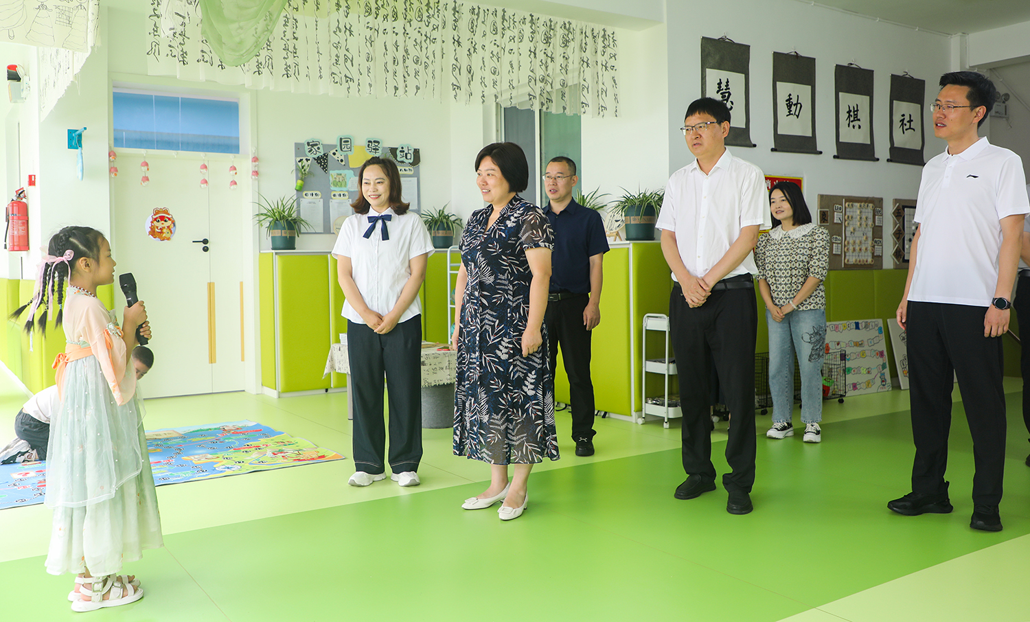 陈江小学校园内,一场别开生面、精彩纷呈的“六一”国际儿童节游园活动正在进行。辛俊一行来到同学们中间,饶有兴致的观看活动展示,并走进教室与同学们亲切互动。辛俊勉励大家要树好品德、学好本领、练好体魄,当好强国建设、民族复兴伟业的接班人和未来主力军。辛俊强调,各级相关部门要始终把教育摆在优先发展的位置,持续优化教师资源配置,稳妥有序做好义务教育管理体制改革“后半篇”文章,把德育贯穿教育全过程,努力办好人民满意的教育。要时刻紧绷校园安全这根弦,为孩子们营造安全、健康、快乐的成长环境。