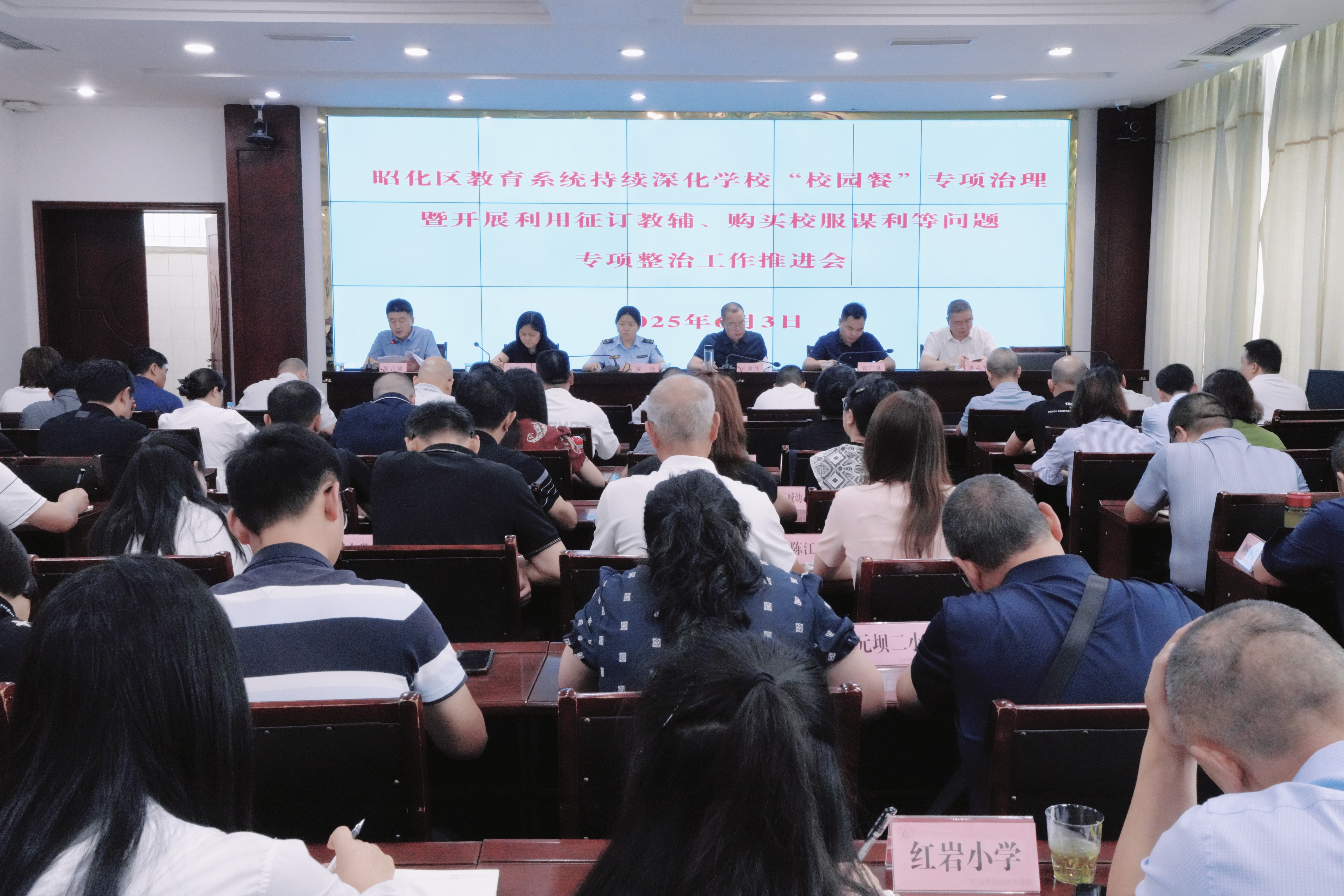 6月3日,昭化区深化“校园餐”专项治理暨开展利用征订教辅、购买校服谋利等问题专项整治工作推进会召开。区教育工会委员会主席余妮芝主持会议。区教育局党组书记、局长王水生出席并讲话。