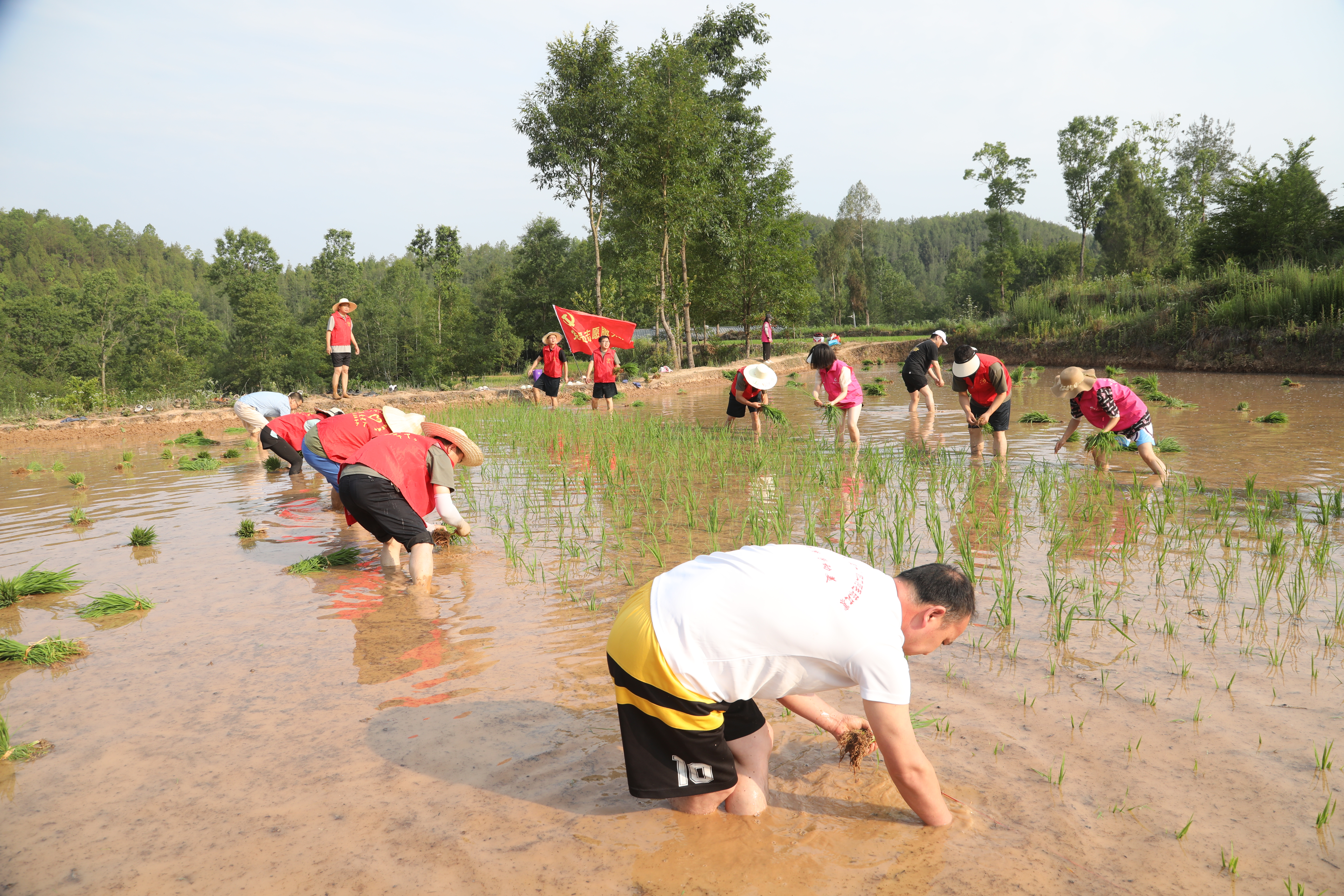田埂上党旗猎猎,水田中身影穿梭。6月13日的磨滩镇龙眼田里,40余名党员干部变身“插秧能手”,开展了一场别开生面的集中插秧互助活动,以实际行动践行“我为群众办实事”,绘就了一幅抢抓农时的生动耕作图。这是磨滩镇践行“葭萌英才”培育行动,推出的沉浸式实践课堂,让年轻干部在春耕一线读懂“中国饭碗”的分量。