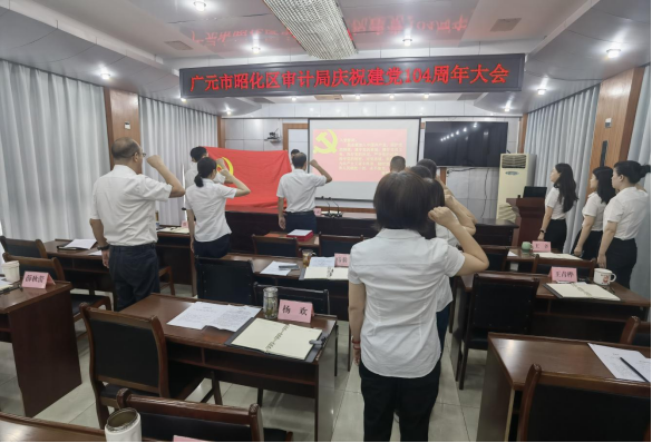 为庆祝中国共产党成立104周年,激励全局党员干部不忘初心、牢记使命,砥砺奋进、勇争一流,以实干、实绩、实效彰显忠诚担当,凝聚推动审计工作高质量发展的磅礴力量,6月30日,广元市昭化区审计局开展庆祝建党104周年系列活动,全体干部职工参加。