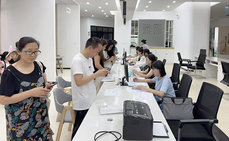 报名现场,队伍从窗口延伸至休息区,报名者手持身份证、学历证书等材料,交流对社会工作的理解与设想。一位报名的年轻人表示:“如果能考进社区工作者队伍,我就能为居民办更多的实事,社区工作者岗位能让我参与社区服务和社区治理,工作意义非凡。”