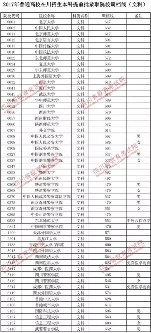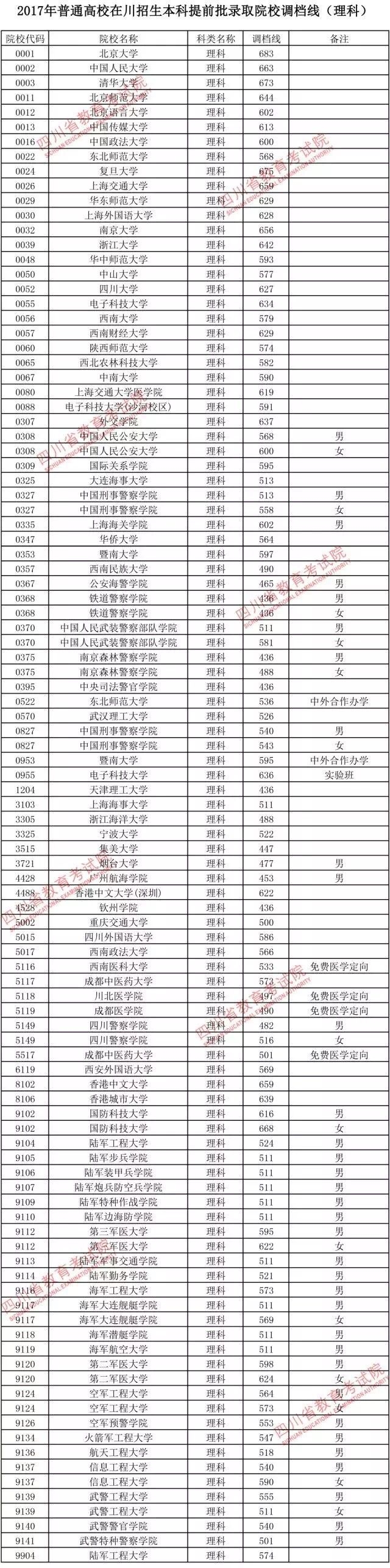 7月11日,省教育考试院公布了2017高校在川招生本科提前批调档线。