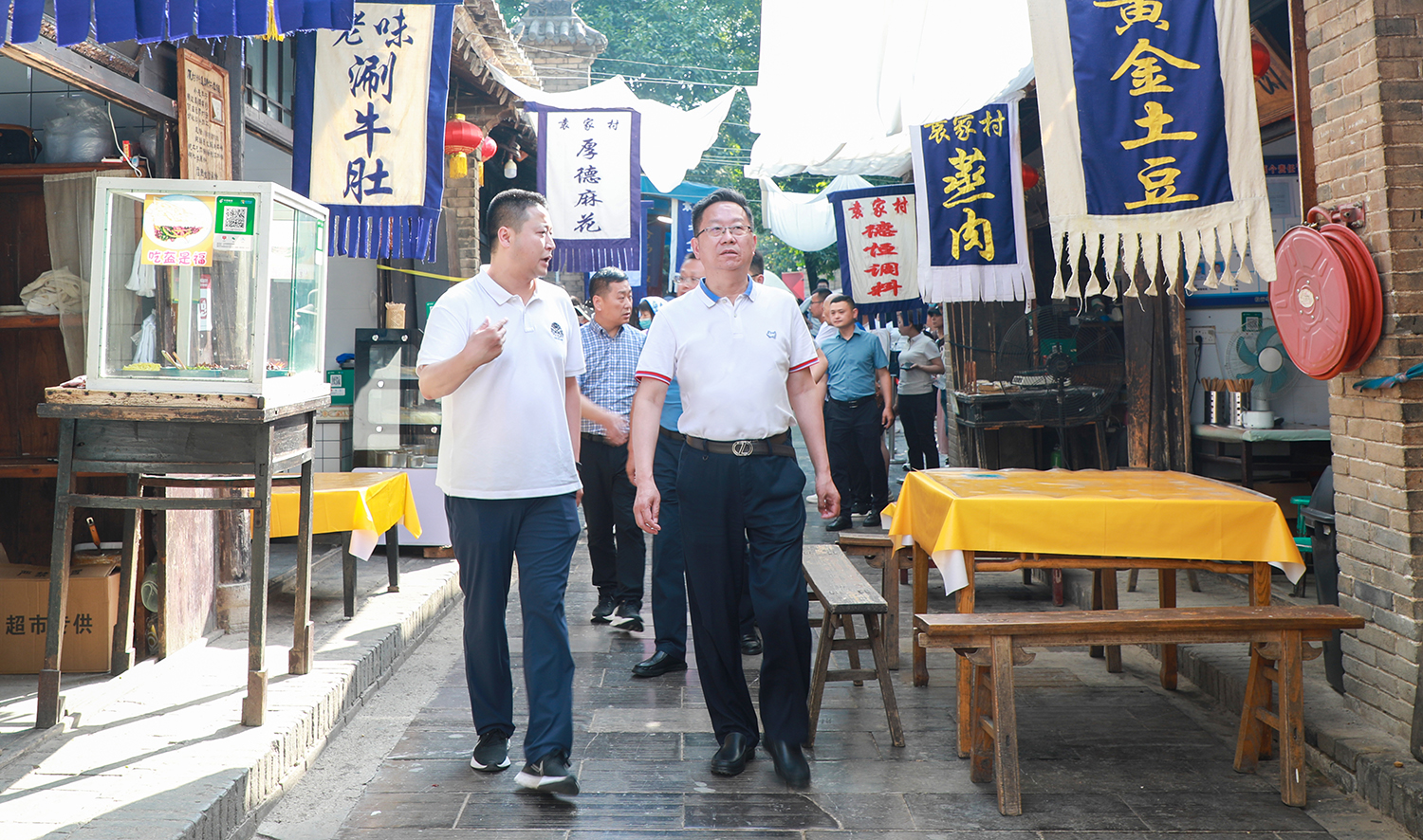 袁家村地处陕西关中平原腹地和西咸半小时经济圈,被誉为“关中印象体验地”,在20世纪70年代之前是远近闻名的落后小乡村,当地积极发挥支部引领和村民主体作用,以关中民俗文化为主题,以旅游创品牌,以三产带二产促一产。如今的袁家村,民巷古朴典雅、店铺临街而立、作坊鳞次栉比、多元业态交织,村子走向集体富裕。27日,刘自强前往礼泉县袁家村,分别考察村史馆、民俗特色街区,了解袁家村发展历程和乡村特色文旅项目打造思路,感受关中文化的悠久厚重。