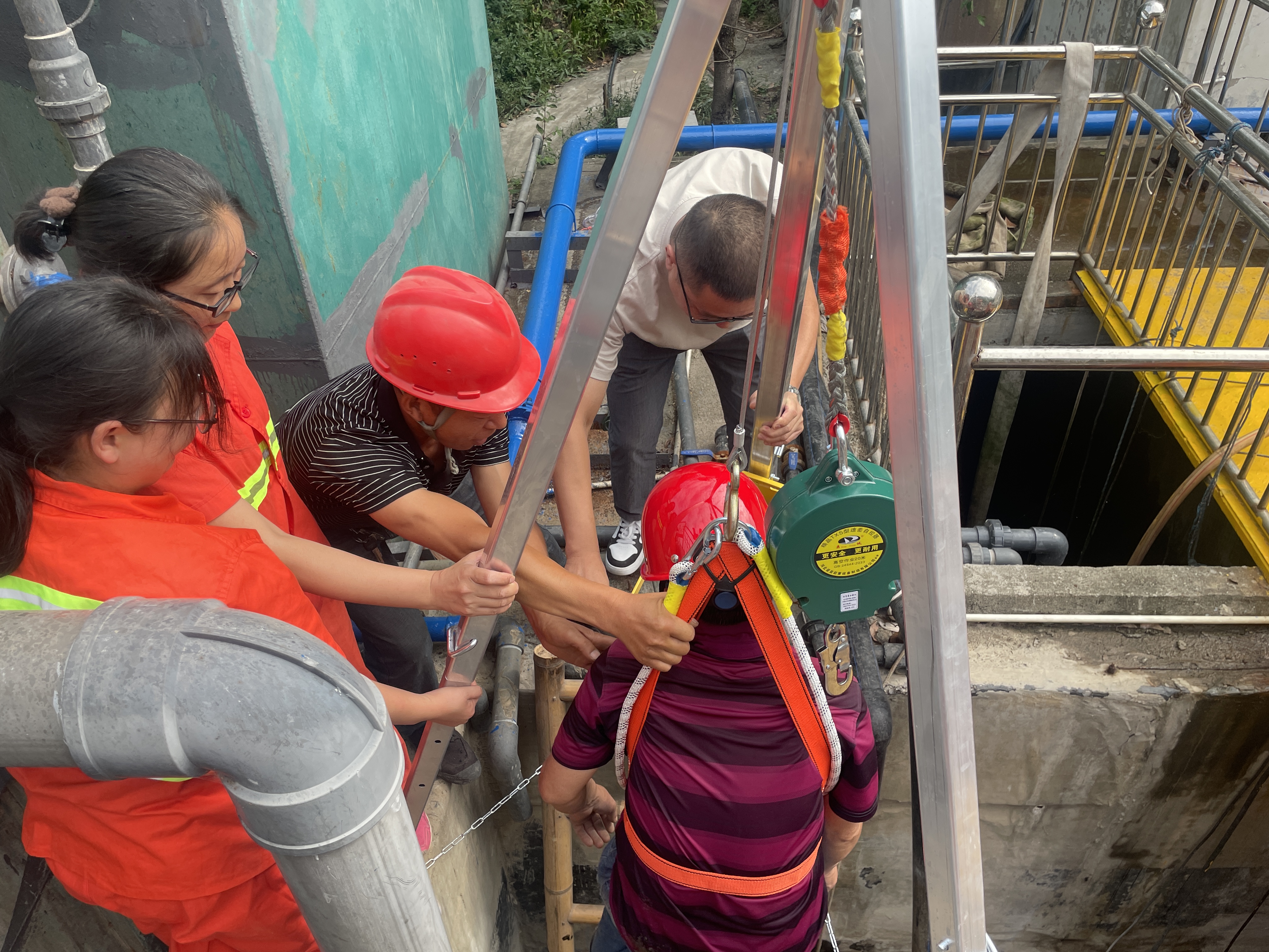 为全面提升环卫领域有限空间作业应对突发事件能力,坚决防范和遏制有限空间作业安全事故的发生,确保在关键时刻能够迅速、高效、有序地开展应急救援等各项工作,2025年6月5日上午,区综合执法局组织区城乡环境中心干部职工在杏树垃圾填埋场渗滤液处理站开展有限空间作业事故应急演练,演练同时邀请了区应急管理综合行政执法大队副大队长涂臣现场指导。