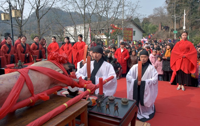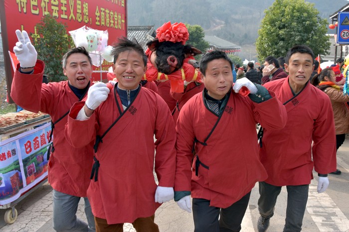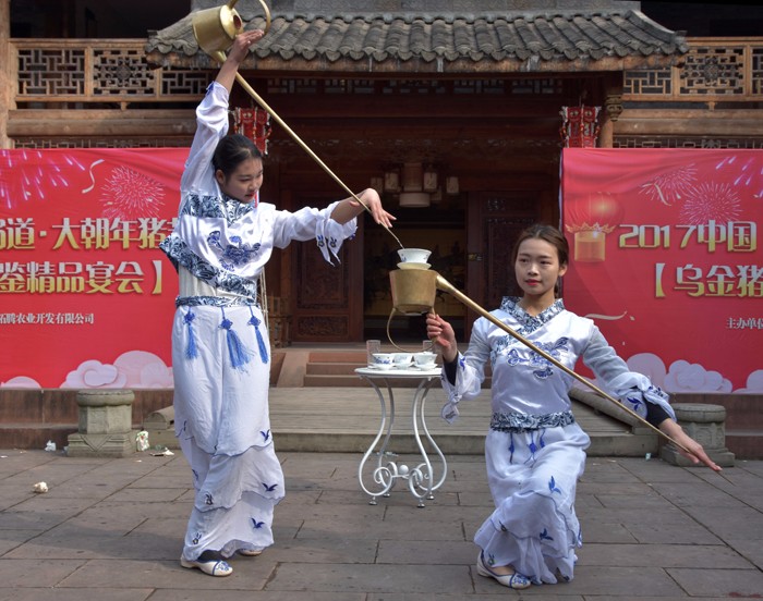 听评书、看变脸、品乌金猪精品菜肴……从上午9:30开始,乌金猪宰杀互动促销、祭祀祈福大典、民俗文化表演、乌金猪品鉴宴、小猪快跑游戏、抓猪游戏、抱猪奔跑游戏等活动次第展开,精彩纷呈的活动吸引了众多游客。