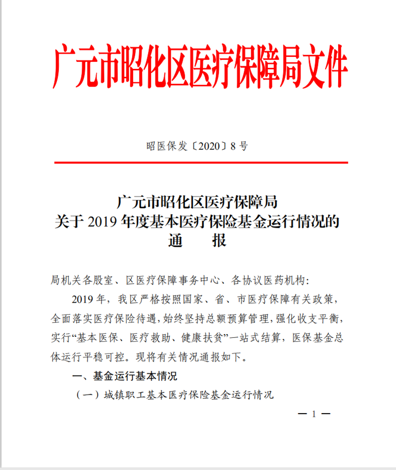 顺应机构改革大潮,昭化区医疗保障局于2019年4月2日挂牌成立。一年忽焉已至,回首过去一年,昭化区医疗保障局在区委、区政府的坚强领导下,在市医疗保障局的正确指导下,高举习近平新时代中国特色社会主义思想伟大旗帜,切实增强“四个意识”、坚定“四个自信”、做到“两个维护”。始终把党的政治建设摆在首位,把纪律规矩挺在前面,抗牢抗实“两个责任”,把做好医疗保障扶贫作为首要任务,把维护医保基金安全作为头等大事,把深化“放管服”改革作为重中之重,把规范定点医药机构服务行为作为核心要务,把持续做好医保征收作为基础关键,奋力推动新时代医疗保障事业开启新征程。