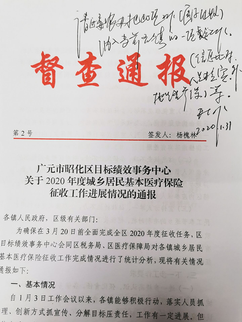 区目标绩效中心印发关于2020年度城乡居民医疗保险征收进展情况的督查通报