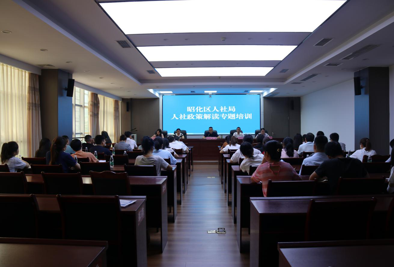 近日,昭化区人社局在6楼会议室组织召开人社政策解读专题培训,60余名企业人事专员参加培训。