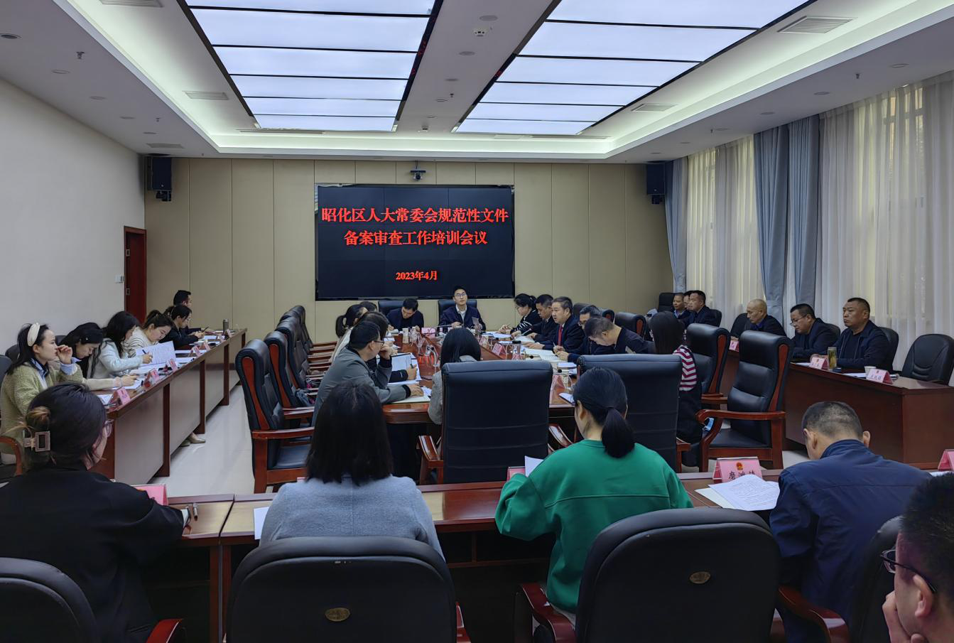 为持续巩固省级法治政府建设示范区创建成果,提高全区行政规范性文件管理水平,4月10日,昭化区司法局联合区人大常委会办公室、区政府办公室举办行政规范性文件备案审查工作培训会。区人大常委会副主任王正功主持会议,区级相关部门、各镇分管领导共45人参加会议。