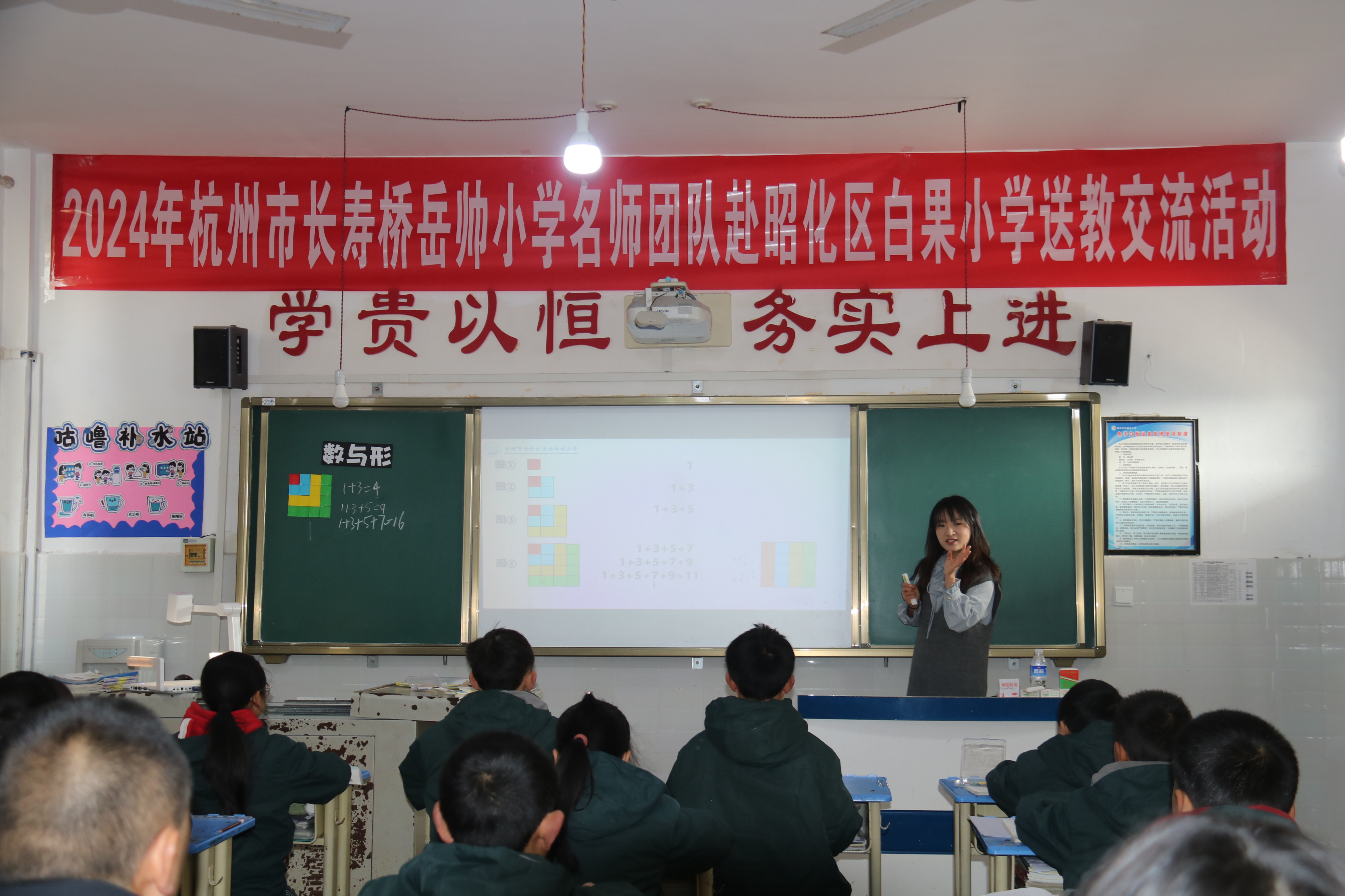 送教环节中,杭州市长寿桥教育集团教师唐婷婷执教的低年级体育课《多种形式跳跃的活动方法和游戏》,巧妙融合了跳跃与多种趣味游戏,激发了孩子们对体育运动的浓厚兴趣。余杭区闲林和睦小学教师吴超执教了六年级数学课《数与形》。他引导孩子们数形结合,用数学眼光观察生活,用数学的思维思考现实世界。杭州市长寿桥教育集团发展规划中心主任虞佳以《三润三历:基于家国情怀的党建引领育人长寿实践》为题作了专题讲座,引导教师们破解核心素养培育难题。