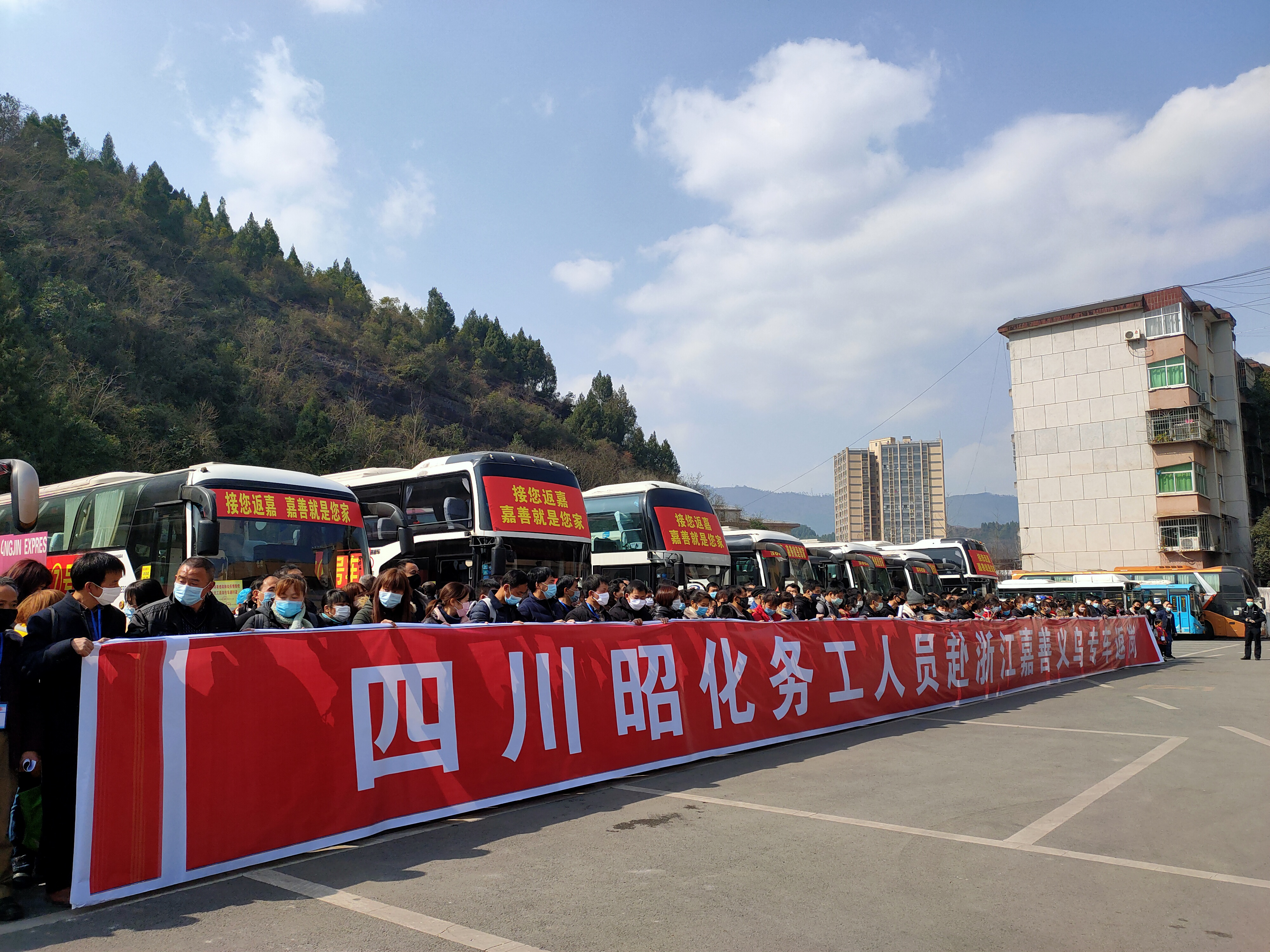 截至2月20日,昭化区已启动两批“春风行动”农民工返岗运输任务,2月16日第一批开行9辆,接送149名农民工前往广元盘龙机场,转乘专机前往浙江嘉善。2月19日第二批开行14辆,运送324名农民工直达浙江嘉善、义乌两地。按照既定安排,预计2月22日,我们还将派专车到各镇接送约500名农民工到广元火车站乘专列直达嘉善务工返岗。